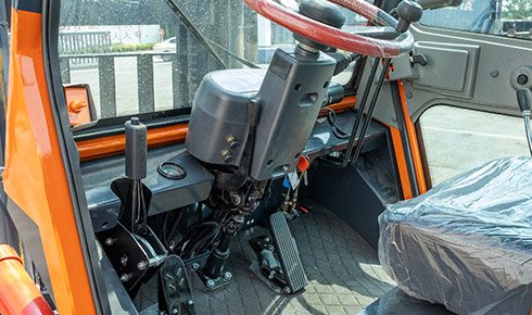The interior of the cab is designed with a forklift traveling system. The comfortable shifting method makes all aspects more in line with that of a balanced forklift.